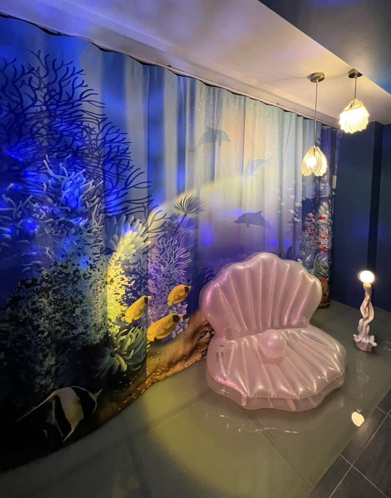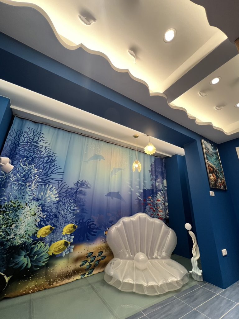 氛圍貝殼吊燈+小魚天花板+網美貝殼座椅